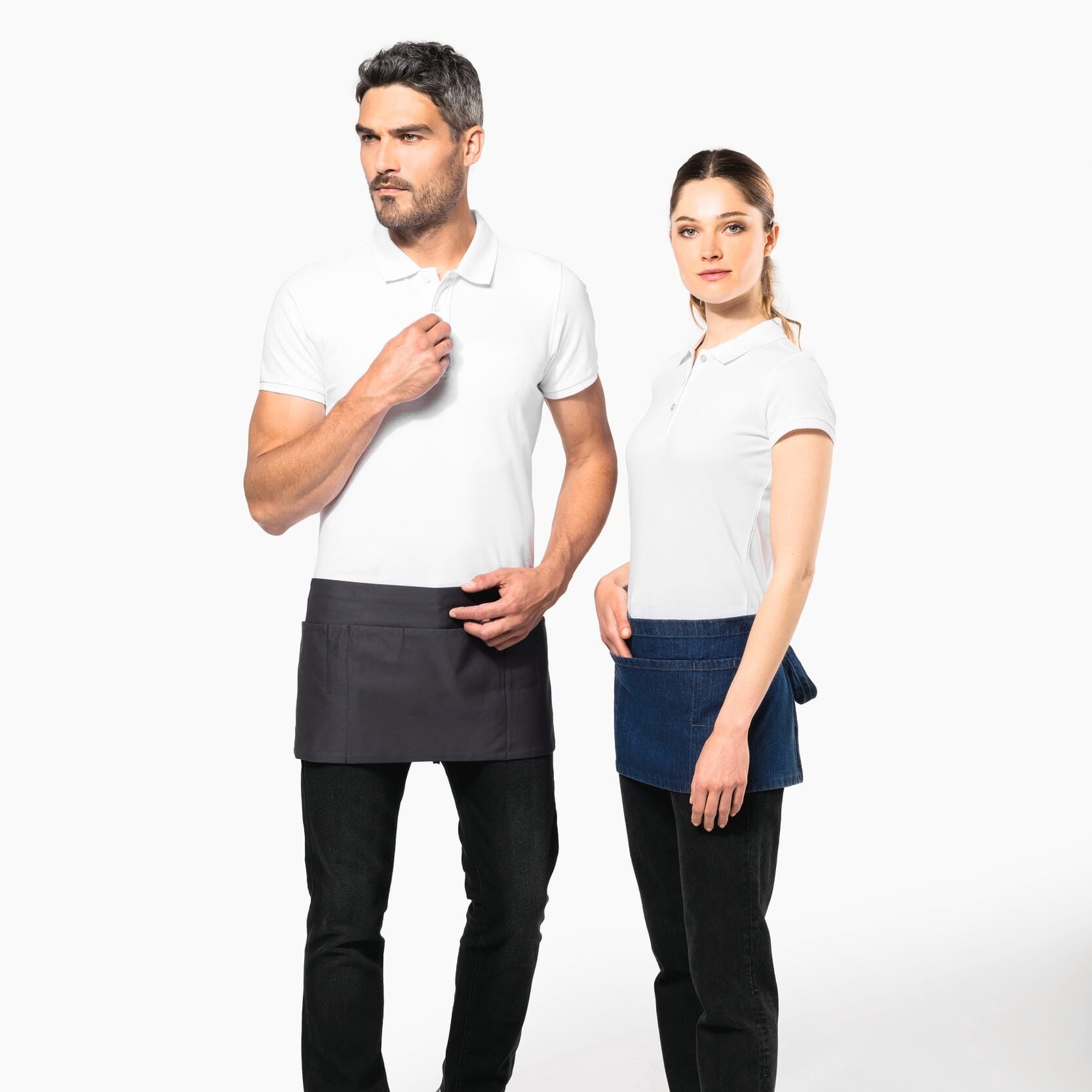 Avental curto de barman. Lavagem doméstica a 60°C. 5 Bolsos. Dimensões: Altura- 26cm – Largura- 70cm Cor Denim: este produto foi submetido a um tratamento especial apresentando um aspecto intencionalmente envelhecido. Este procedimento implica variação de cor de produto para produto tornando cada peça única..
